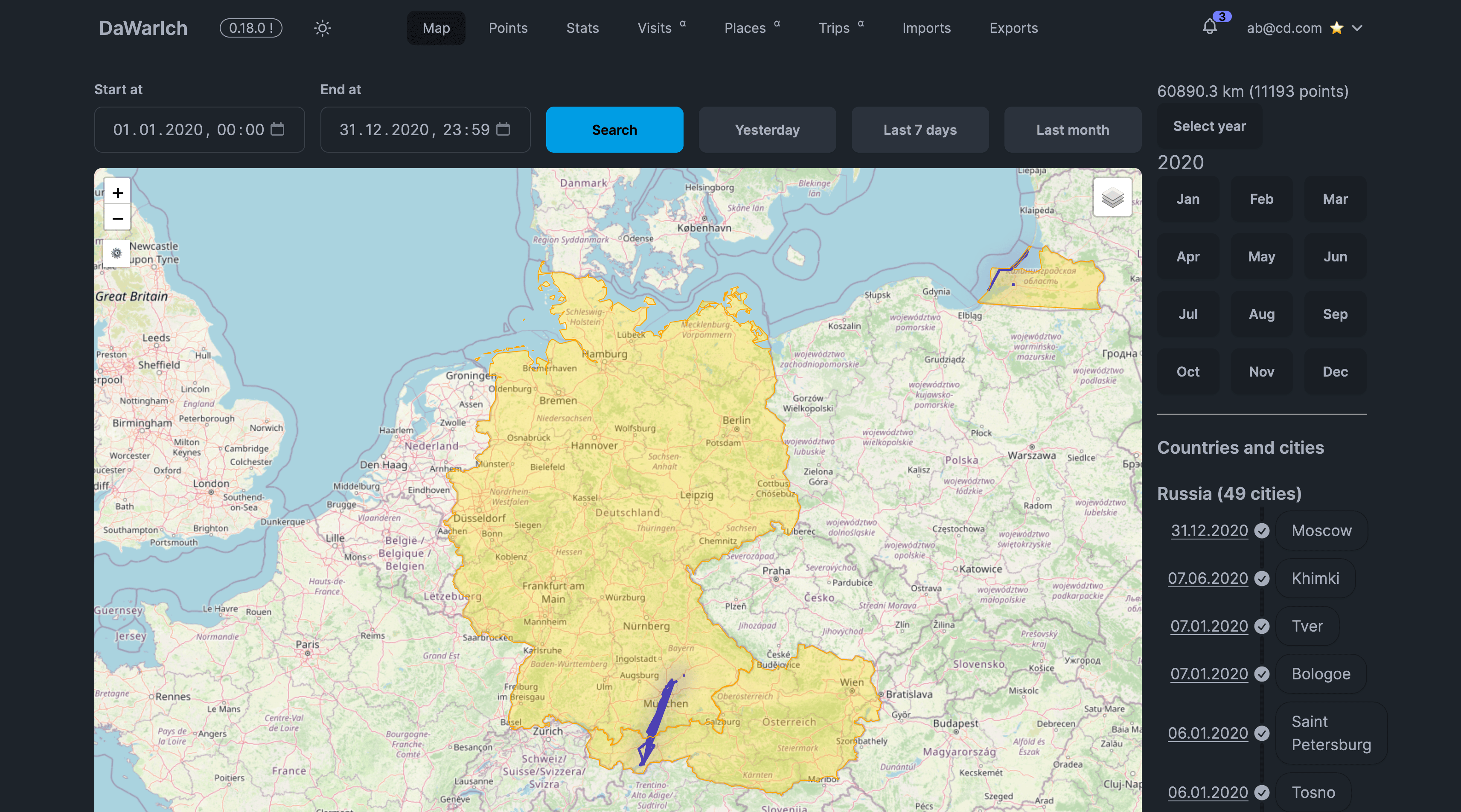 November was a good month for Dawarich. I've added a lot of new features and fixed a some bugs, and, among other things, I've added a new Patreon tier. It's called "Hosted Dawarich" and basically offers my service of hosting and updating Dawarich for you. Take a look at the Patreon page for more details and feel free to ask me any questions.